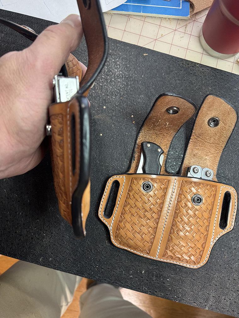 Members Hildebrand Posted 38 minutes ago Members Report Posted 38 minutes ago (edited) I usually carry a knife and leather man combination when I am working outside or camping/hunting/etc. I have 2 sets one stays on the work pants the other moves depending on what I am doing. Both needed new leather so I took the leather man pattern from the Leather Crafters Journal and modified it to hold both. The scabbard is to carry a single shot pistol in a backpack, you could also carry it on a saddle but I don't have any stock so backpack only. The zipper keeps it pretty weather tight. It is based on the scabbard build in The Art of Making Leather Cases. Todd Edited 36 minutes ago by Hildebrand spelling Quote