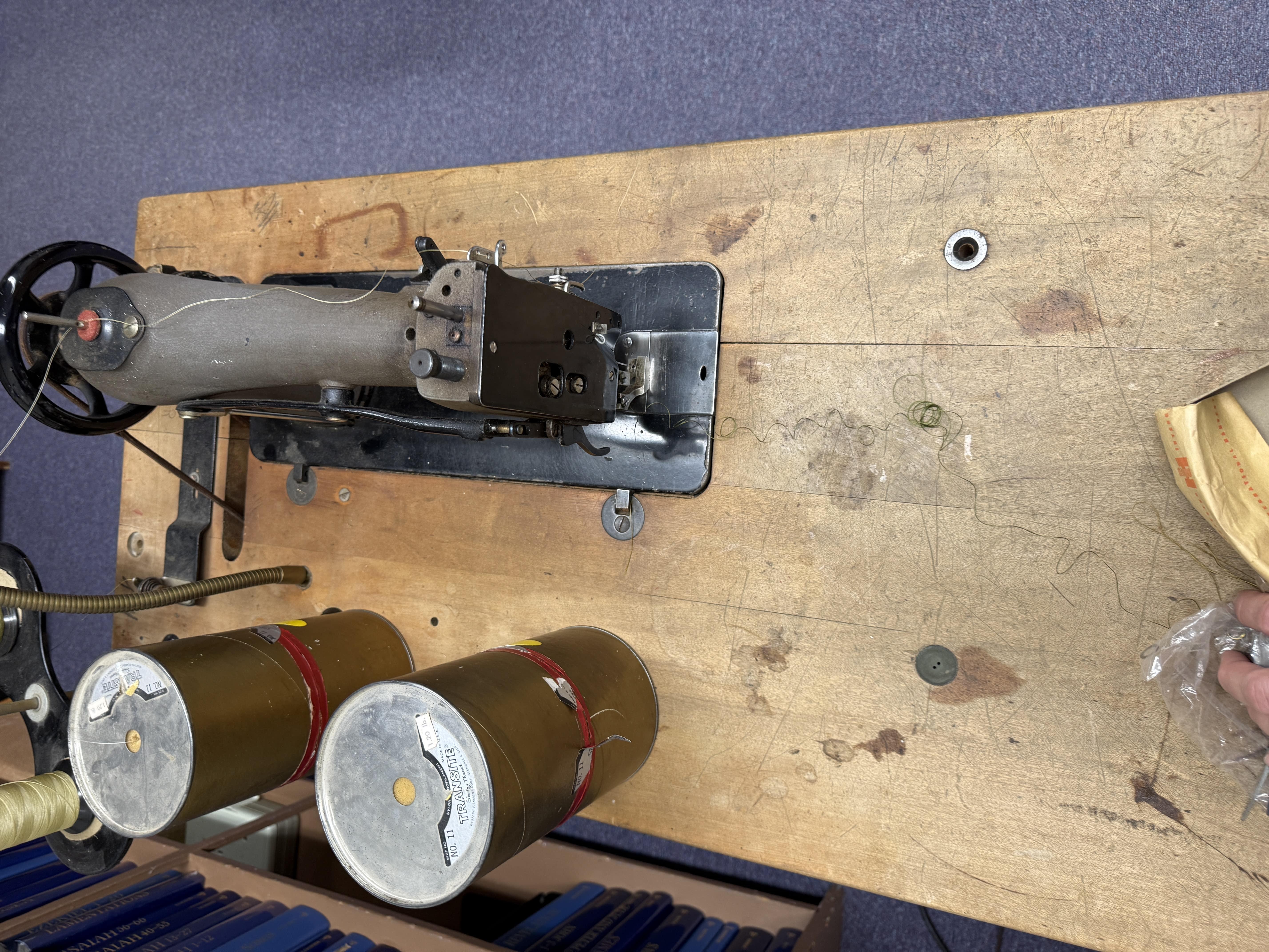 Members boatmaninc Posted 1 hour ago Members Report Posted 1 hour ago Recently, I was given this sewing machine. From what I have been able to figure out (not much) is that it's a Consew Model 28 made by Seiko as well as a copy of the Singer 78-3. It's on a Singer Table which appears to be in great shape. I'd like to figure out more. Age? It's the dark olive matte green finish with a black line above the black base. I'd like to restore and use. Any oil recommendations beyond the premium sewing machine oil? Anything need grease? Any idea of the age? I've scoured Google using "Consew Model 28" and only really 2-3 pictures appear in this vintage. Who do I contact at Consew regarding the serial number? Any tips on restoring table? It's age? What is the best think to do to the table top. Any instructions that come with this table? Large factory pin holes found in 4-5 locations on top. Motor maintenance? Can anyone identify the walking foot on this machine? Finally, can anyone explain the weird letter arrangement on this machine? Appears to be two different similar styles of letters. Appreciate any advice, tips and even some criticism. Noah Consew 28 Operating Instructions.pdf Quote