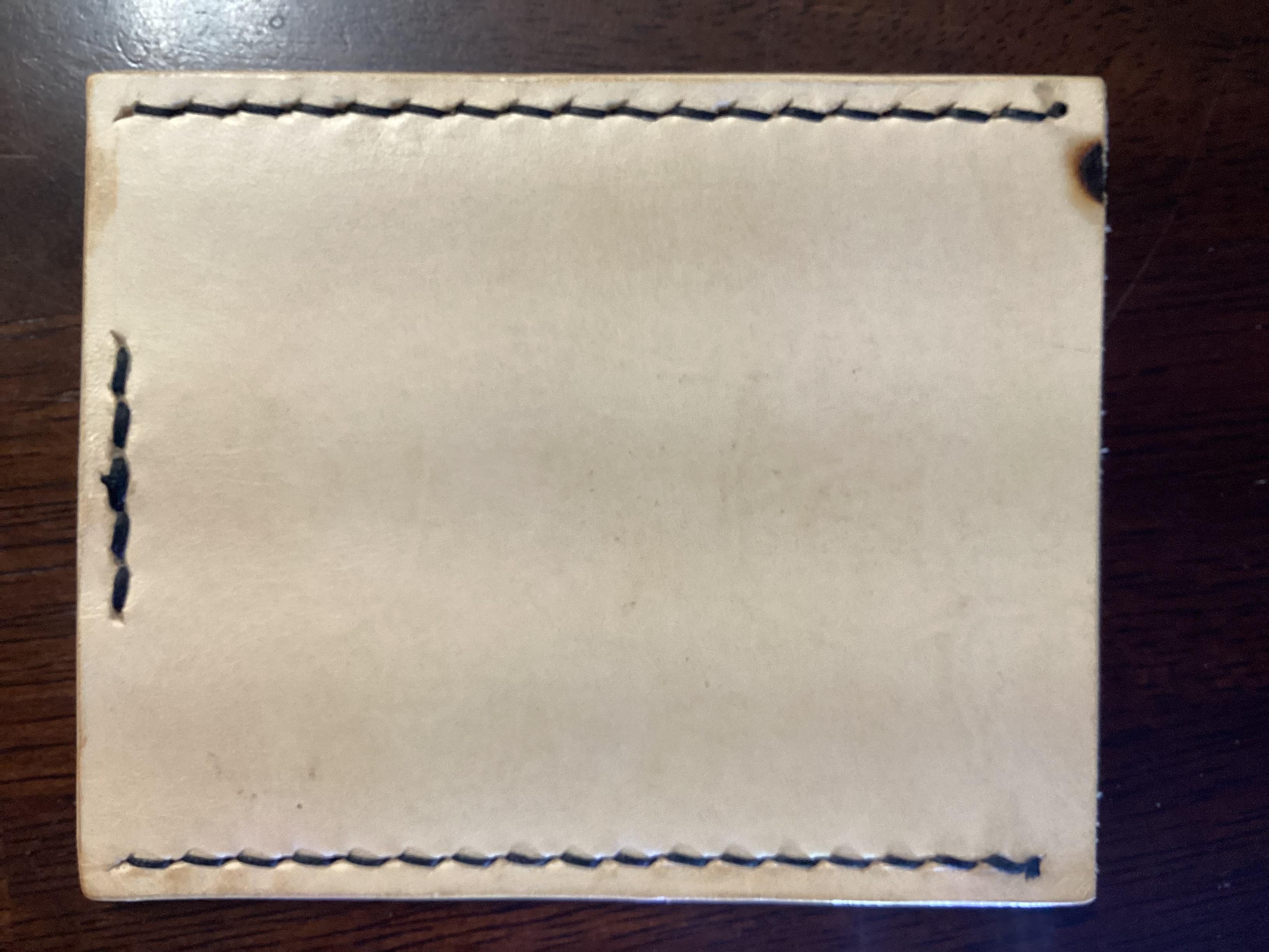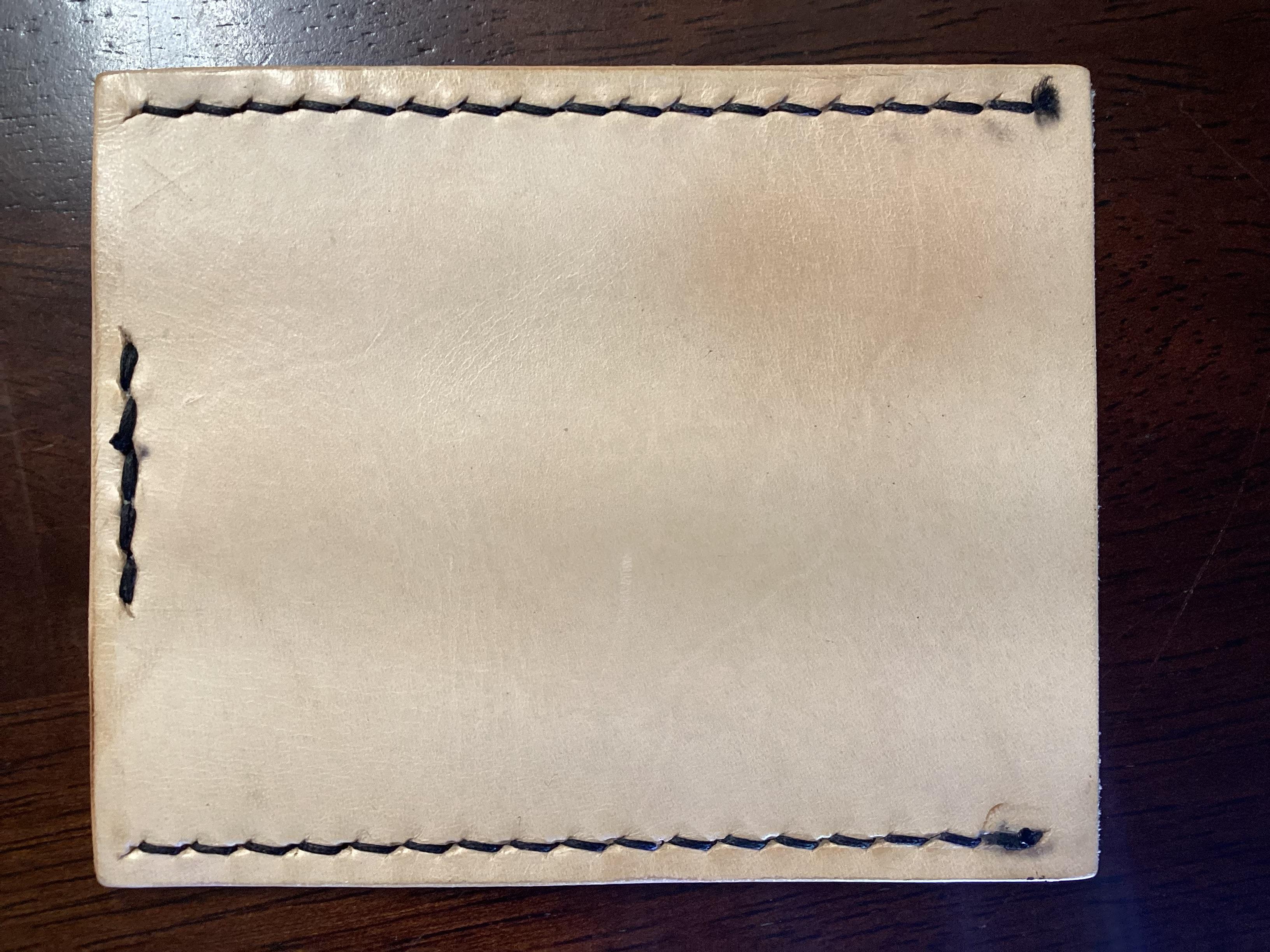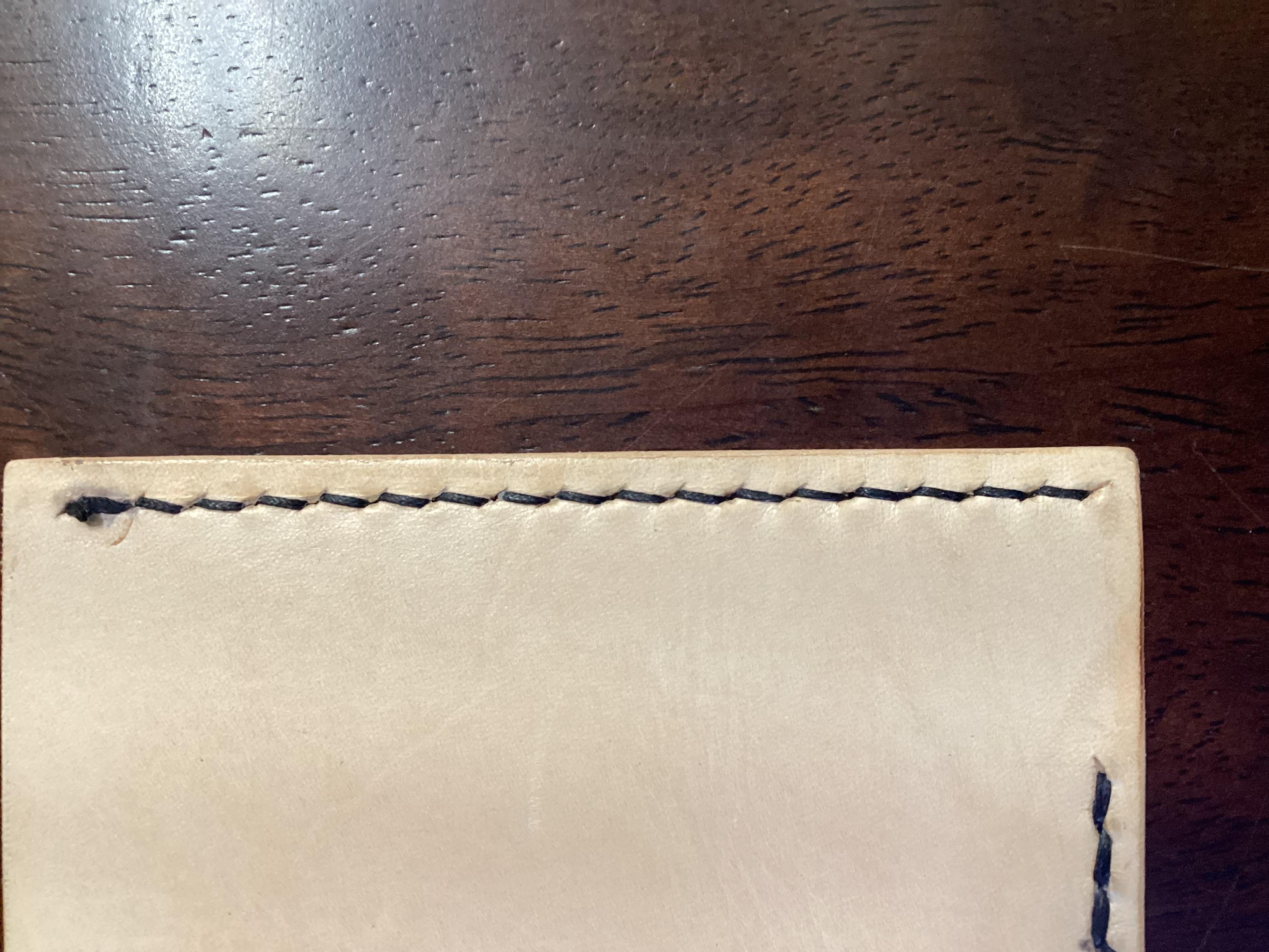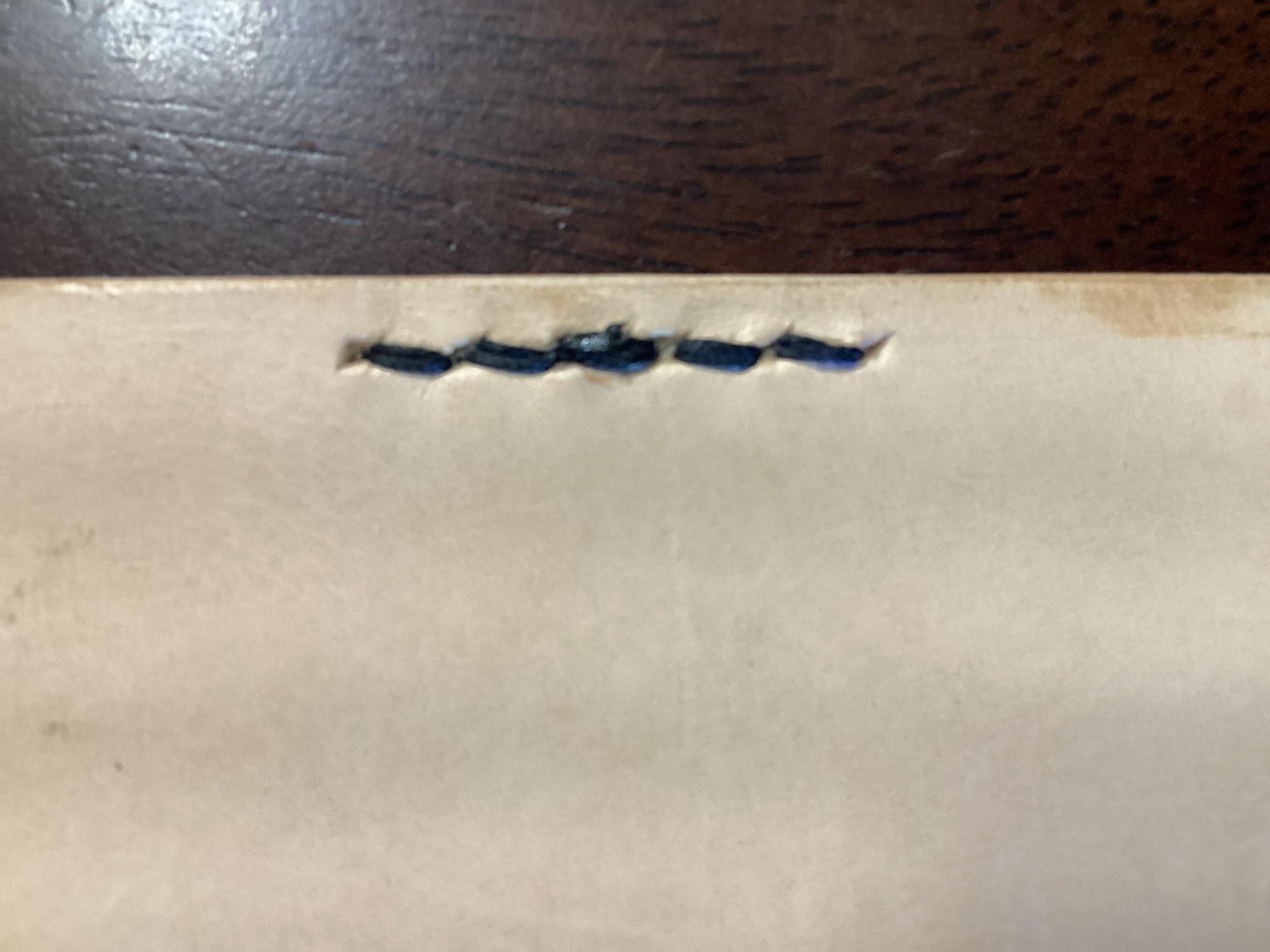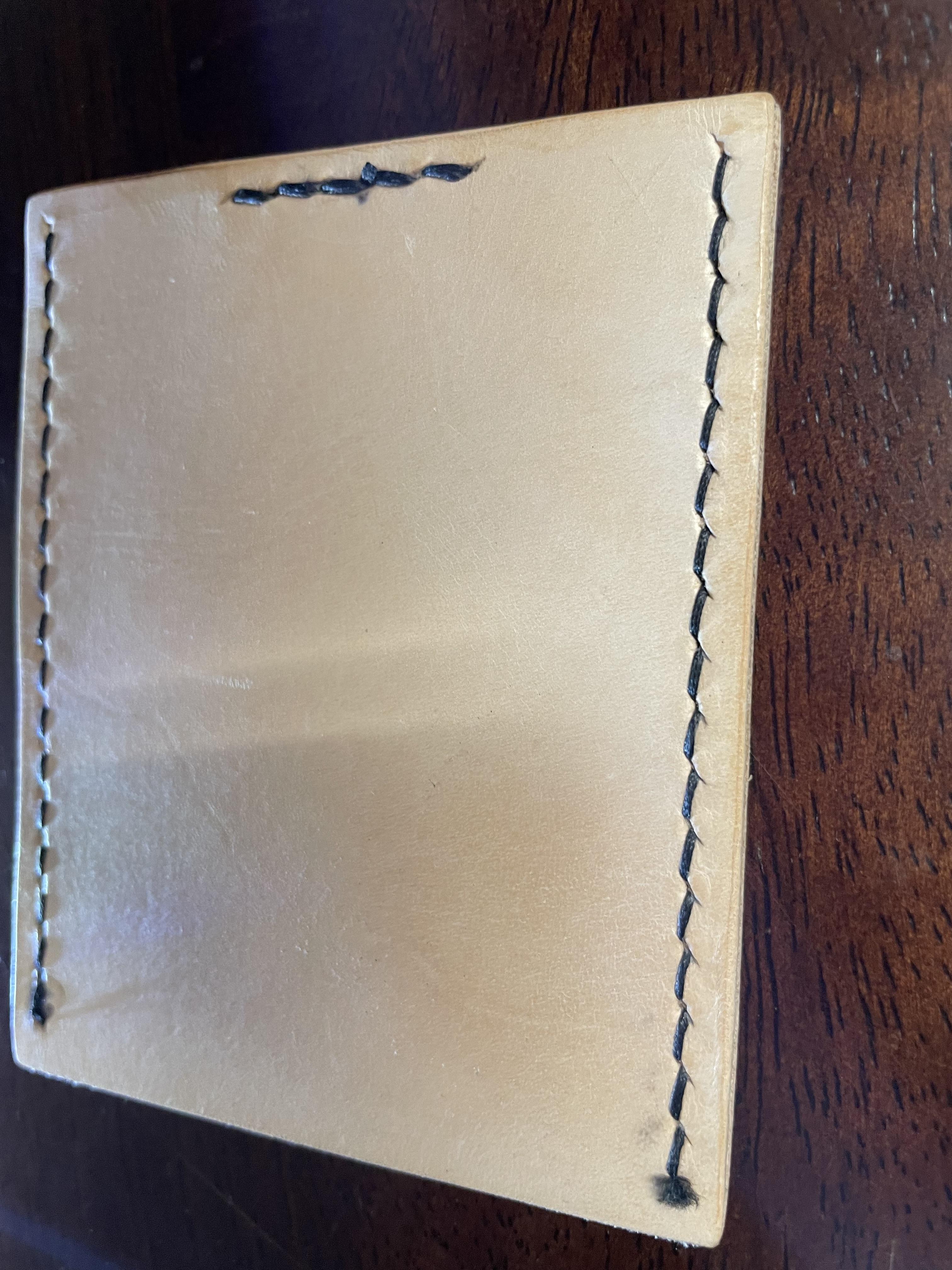 Members lukejmit Posted 1 hour ago Members Report Posted 1 hour ago I put iron to leather for the first time about 2 weeks ago. This is my first attempt at cutting leather to equal sizing, and second time sewing two pieces of leather together. I don't have a suitable beveler for the edges so I sanded the edges slightly round. The backstitch is my first attempt at backstitching. The two pieces sit slightly uneven from the stitch. I think when I was punching with my diamond chisels I punched a bit off. My original intent was just to sew two pieces of leather together to practice my stitching, I liked how it was developing so added the short backstitched middle stitch holes before sewing the second side. I cut the thread too short on the long sides and didn't plan in a backstitch. Ending the thread needs a lot of work. Please don't hold back on the critiques. Thank you. Quote