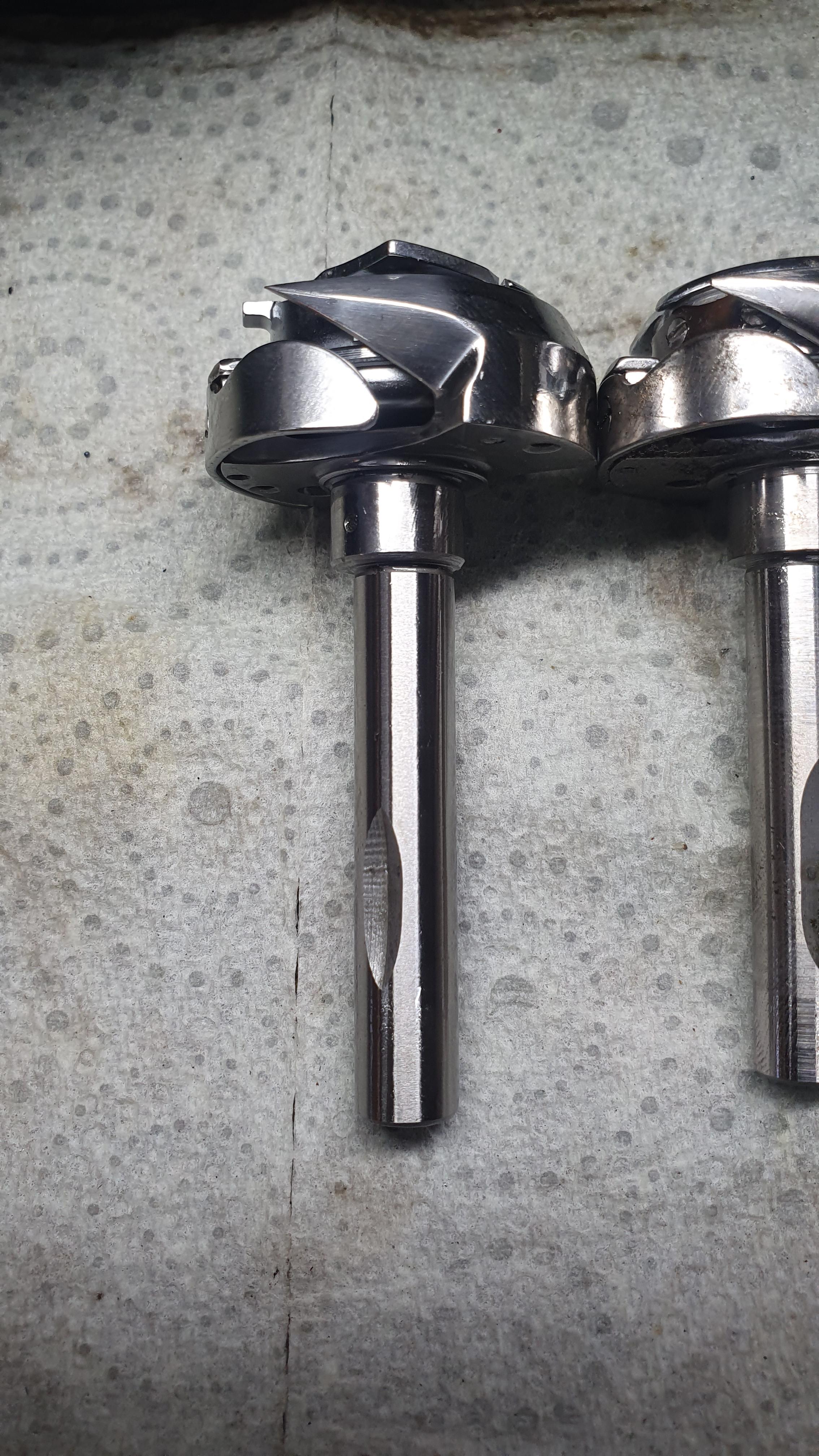 Members beefy Posted 4 hours ago Members Report Posted 4 hours ago (edited) Just started installing a new hook on my Singer 211G156. First thing I noticed was the hook timing was way off, and the large gear could not be moved sideways enough to correct the timing. I have not ran this machine yet so thought the timing must have been off when I purchased it, and I'm only just finding this out now. However, I pulled the new hook out and put it side by side with the original hook. As can be seen in the pictures, the V-slot in the new Chinese (supposedly a CKPSMS) hook https://www.ebay.com.au/itm/262943436183 is in a completely different position. I had to advance the small gear on the hook shaft one tooth to be able to time the hook. So my big question is will a hook for a Juki LU-562 drop straight in to a Singer 211G156. Up to this point I'm under the impression the answer is yes, but am I wrong. It will not be a big deal so long as the large gear is still fairly centrally aligned to the center of the hooks vertical shaft, i.e. I don't have to move it sideways too much to get the timing correct. I haven't fine tuned it yet but it seems to be OK in that regard. Tomorrow I need to check the positioning of the eccentric on the Chinese hook and see if it's the same as the original hook. If that is way out of rotational position that's going to affect the timing of the case opener arm. Looking at the photos it initially appears the eccentrics positions may be different but I'll check with a dial gauge. Chinese hook is on the left and original hook on the right. Edited 3 hours ago by beefy Quote