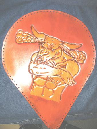 Members Sawyer Posted March 29, 2008 Members Report Posted March 29, 2008 finally got the camera working,for a while anyway. Here's the seat panel for the large seat pan i made for Big "H" I used resist on the bull figure and i'm going to spray black around the bull, so as to fade from light to brown to black, i hope ! I'll start lacing tomorrow after the dye drys. Quote