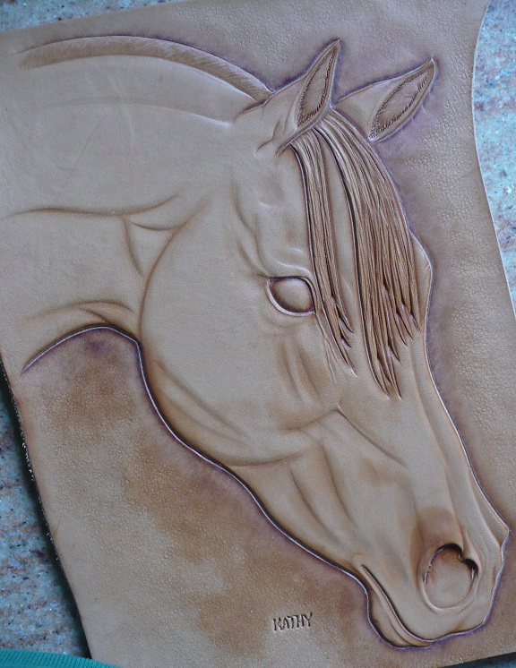 Contributing Member ClayB Posted January 21, 2010 Contributing Member Report Posted January 21, 2010 Sorry Clay, I missed that little detail. Maybe that's because you owe me an email, or is it 10?!? ) The eyes and teeth are the fun part of the whole thing. I wouldn't think of having a class without you. If you like, I can work on your teeth in class. Is that your picture of tooling feathers on the home page? Kathy Sorry Kathy, this working every day is really cutting into my social life! They keep saying Colorado is supposed to be sending us a nasty storm, but it's been taking a long time to get here. Maybe you could ride along with it, then when I'm snowed in next week, you can teach me how to carve horse teeth. I think the biggest reason you want me in a class is cuz you owe me a whack on the top of the head. I think the feathers on the home page are Jim Linnell's. Ok, that'll have to do for the email I owe you, I've got to go to work and you need to carve some more cool horses! Quote ClayB Badlands Leather Art blog Badlands Leather Art Website