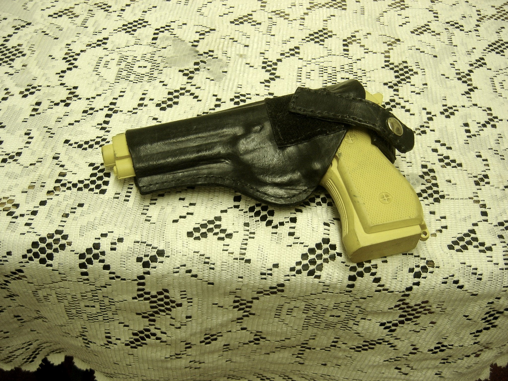 Members swivelsphinx Posted July 8, 2010 Members Report Posted July 8, 2010 Hey All: This is a holster I made for a 9mm Beretta. Due to the fact that I do not have a firearms license or FID card, I bought the "training pistol" model in the photo to use for the molding work. This worked *very* well- the customer's pistol fits in the custom holster beautifully! As you can see, the closure on the holster has a single snap and is attached to the body via Velcro. Aesthetically & structurally, this was not my personal preference, but done on the customer's request. I took the Velcro elements from the old worn-out holster and saddle stitched it into place with linen thread that I waxed and dyed myself. I normally prefer to embellish my leather work in a distinctive way, but decided to stick with "basic black" because the customer is planning on wearing it with his National Guard uniform. Quote "Where there's a witch, there's a way!"