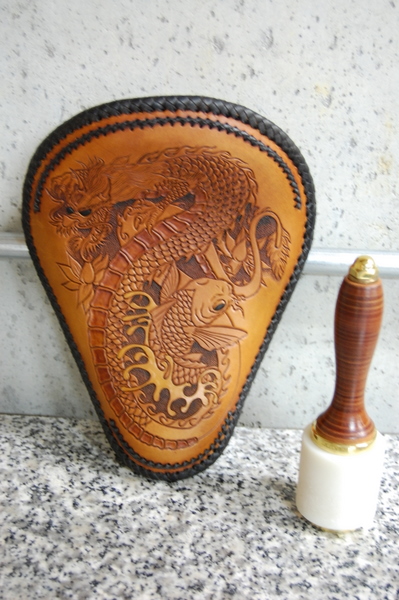 Members Spinner Posted December 6, 2010 Members Report Posted December 6, 2010 The work continues Looking good David. I notice in the updated pictures that you altered the scales on the dragon's back when you cut them from what you had when you traced/drew them. Any insights as to why? Was it due to a scaling (no pun intended) issue or simply a layout change or...? Just curious...always educational to hear why folks do certain things. Chris Quote Chris Three Mutts Customs Leather - http://www.threemuttscustoms.com
