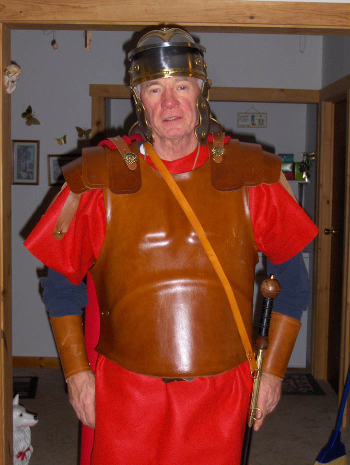 Members Dwight Posted December 14, 2013 Members Report Posted December 14, 2013 I used vegetable tanned leather for my armor, . . . made to look like the statue of Agustus Caesar (I believe it is in Rome???). It is about 4mm thick, . . . and I paid about seven dollars US per square foot for it. The wonderful thing about this type of leather, . . . it is easily worked, . . . cut, . . . sewn, . . . all that working stuff, . . . until you are ready to finish it. Then you dunk the whole thing in very warm water (around 130 deg F), . . . then mold it to the shape you want it, . . . let it dry, . . . and it will dry fairly hard. I made a mold of my upper body, . . . and did the above process, . . . and now I have my alter ego: Centurion Salvatorus Antonio, Centurion of Capernaum, of the Sixth Legion. May God bless, Dwight Quote If you can breathe, . . . thank God. If you can read, . . . thank a teacher. If you are reading this in English, . . . thank a veteran. www.dwightsgunleather.com
