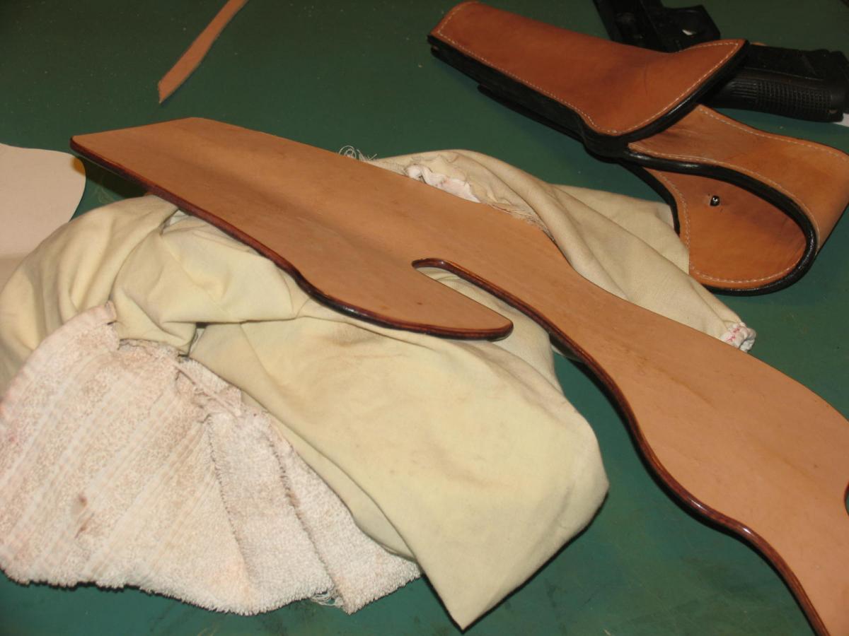 Members Red Cent Posted February 18, 2014 Members Report Posted February 18, 2014 Here are some thoughts. First, daubing just a touch of water on the edge of a beveled and unsanded edge will produce a mirror like finish with a motorized burnishing tool.. But.....achieving the pictured edge with the uniformity displayed is awesome. There is a "sweet spot" with the application of water/liquid in the beginning that will provide even edges. Again, I am using a motorized burnisher. One can take a piece of leather, as in the picture, and wet it thoroughly, and let it dry on a flat surface. It will become hard and you can come close to the picture with extreme care. I am constantly amazed with leather work and the abilities that other possess. Quote https://www.facebook.com/redcentcustomleather?ref=bookmarks http://www.redcentcustomleather.com/