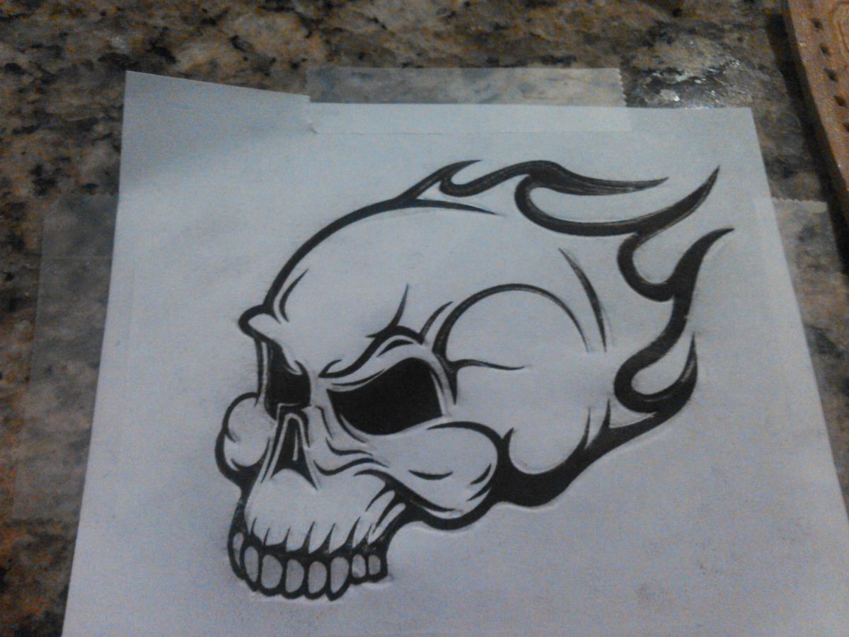 Members ltracy1000 Posted January 2, 2015 Members Report Posted January 2, 2015 Well, it has been a bit since I have posted or made anything, but I wanted to share the step by step of how it came together, and gather some input on this flask sleeve. It's my first attempt at tooling and staining, so please feel free to give me some input. This is border tooled into the sleeve: This is the original clip art: This is the design traced into the work piece: This is the design carved into the work piece: Started tooling: Tooling finished: Stained (I liked the grained look, so I left it alone): Finally, a front and back view with it clear coated, laced, and on the flask: Anyway, thank you all for looking. Next time I think I will be adding color to the skull and maybe backgrounding some, depends on what the client chooses. Quote --Landon