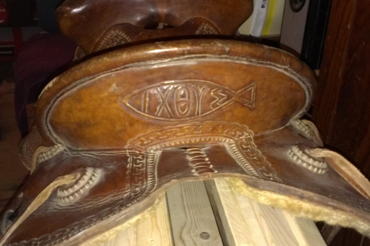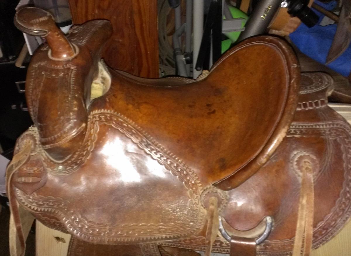 Members doc1876 Posted September 19, 2015 Members Report Posted September 19, 2015 I have this semi bear trap saddle that I bought ten years ago to break horses with, as I am not as "bouncy" as I used to be. It did a great job, and now the thing is just too heavy to lift around. I am going to make a Texican/Californio saddle, and I am thinking of letting this one go, but I can not find anything about the maker. the tag says H. Martin, in the Christian fish symbol. If you can help with value or someone that is interested, I am curious, as well as reasonable. As you can see, it is a real well made saddle, and I will tell you I don't think you could drive over it with a truck and hurt it. I have two more photos that need to load. and will try them in the next posting Steve next picture next picture Quote